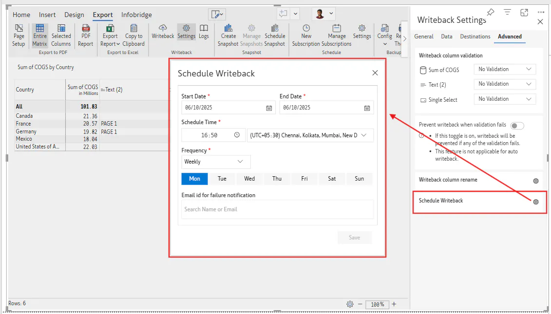 Inforiver Scheduled Writeback feature to automate data writebacks at predefined intervals eliminating manual effort and ensuring timely updates across your reports.