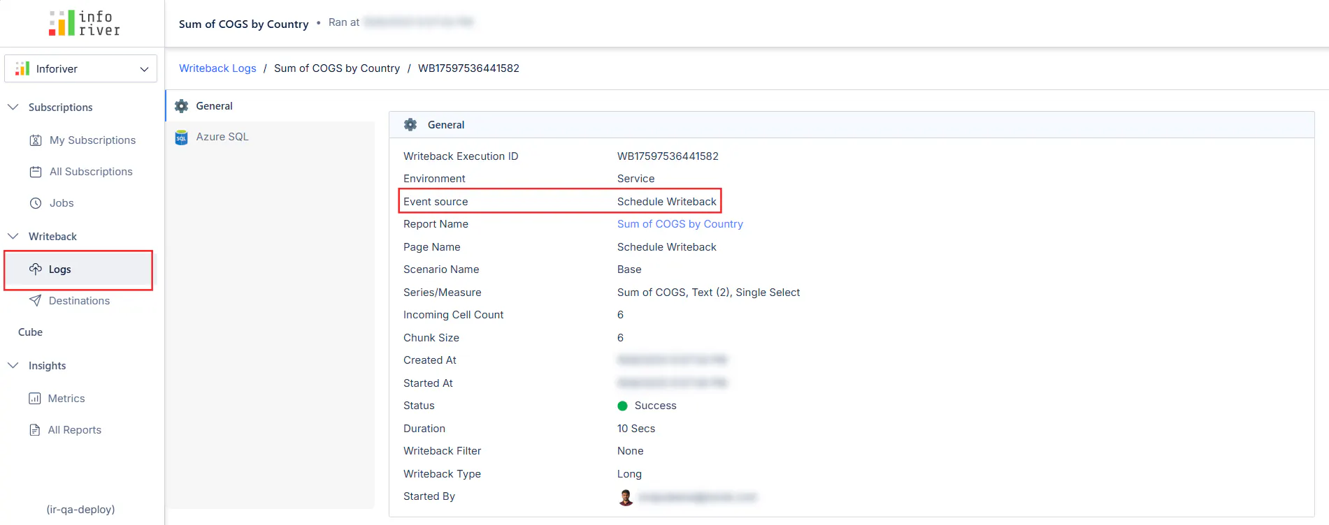 Monitoring & Logs: To track execution history and troubleshoot issues, navigate to the Admin Console and click on Writeback - Logs. This section provides detailed logs and status updates for each scheduled writeback.